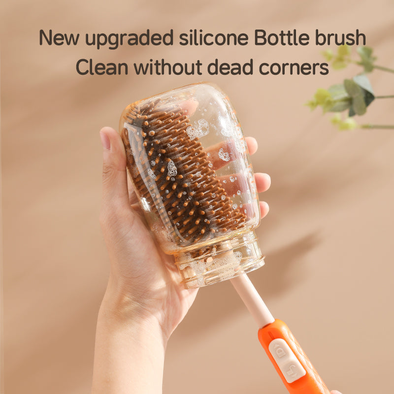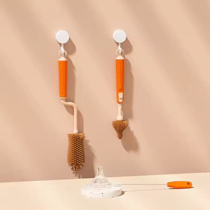 - 3-Piece Silicone Cleaning Kit — includes a bottle brush, nipple brush, and straw brush with flexible silicone bristles that clean without scratching. The 360° rotating handle reaches every corner for superior hygiene, while quick-dry, mold-resistant bristles ensure long-lasting freshness.