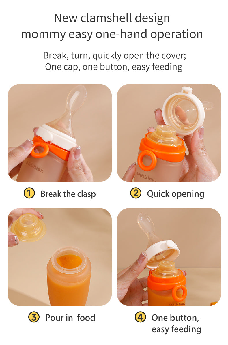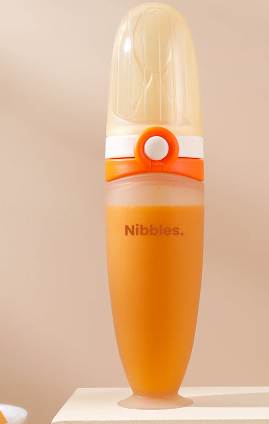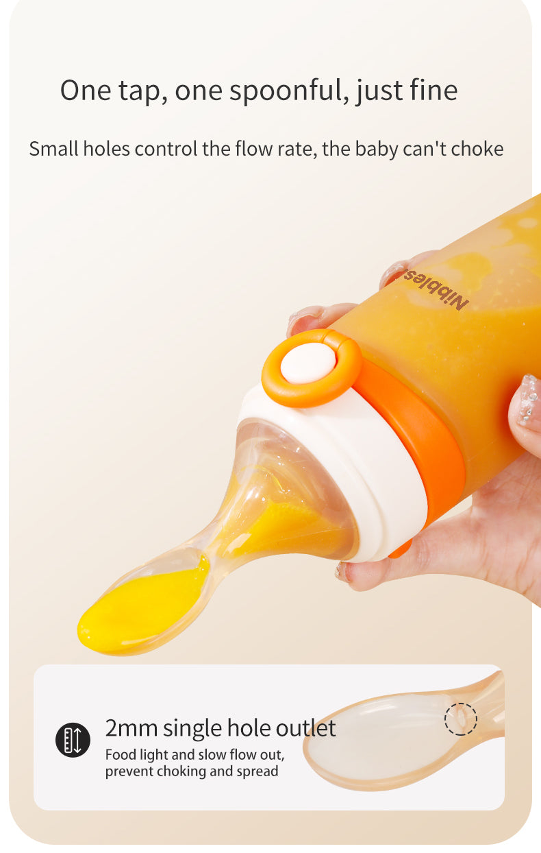 Nibbles Premium Silicone Baby Spoon Feeder Bottle – 120 ml | BPA-Free, Soft Tip, Anti-Spill